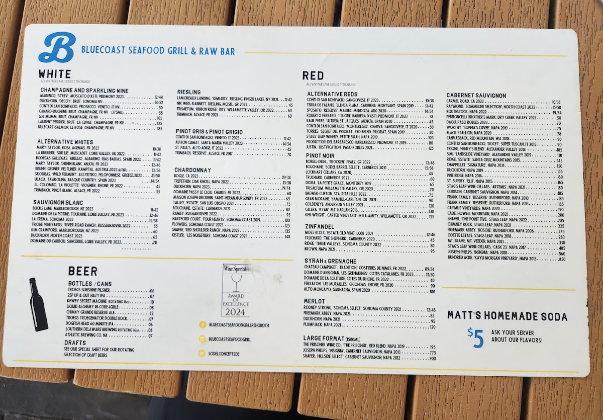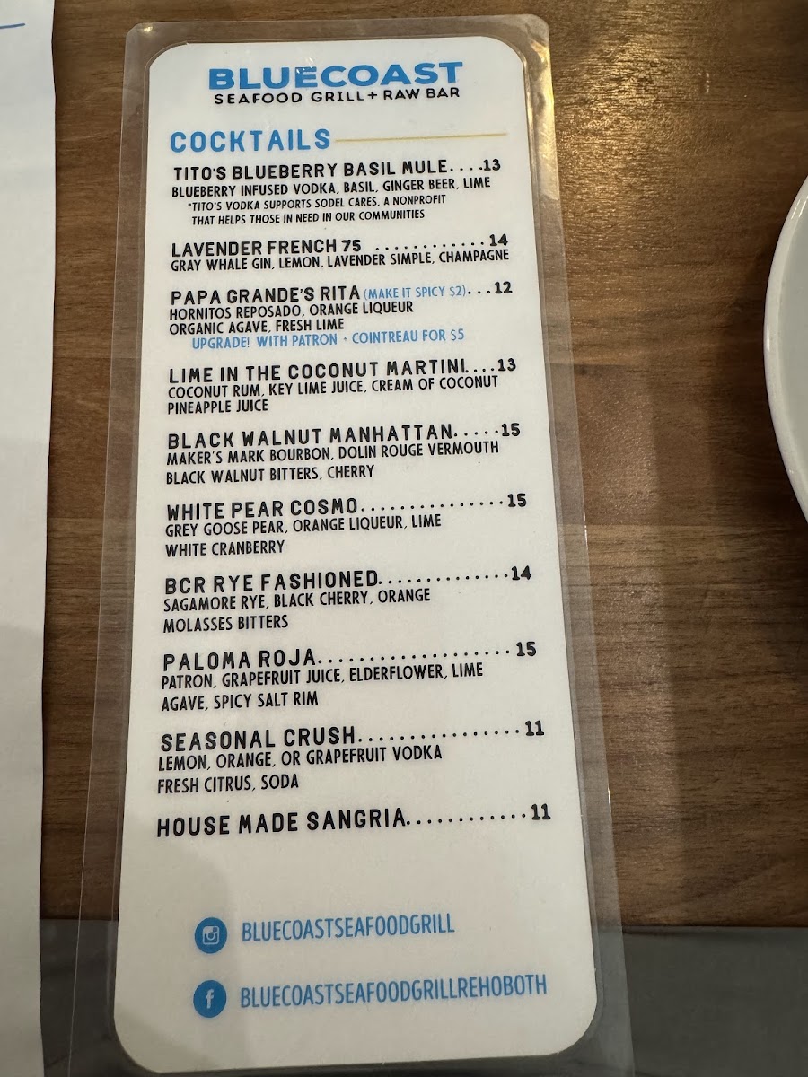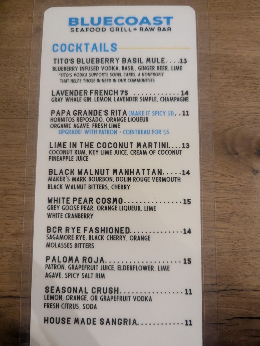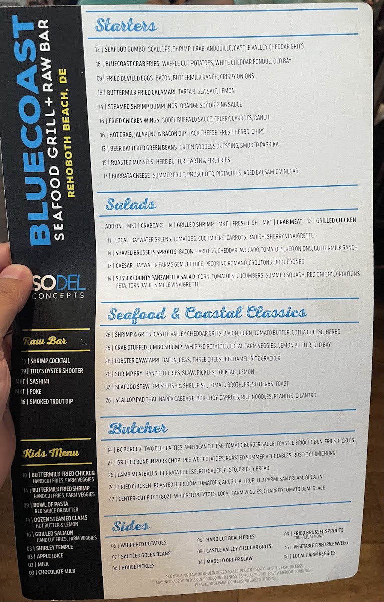 Introducing the Menu at Bluecoast Seafood Grill & Raw Bar Rehoboth